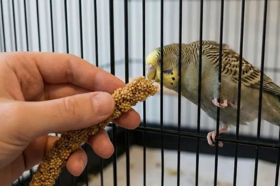 – The Power of Treats: Find out what your bird’s absolute favorite treat is, such as millet or a specific fruit. Start by offering a long treat through the bars of the cage to keep a safety barrier between you.