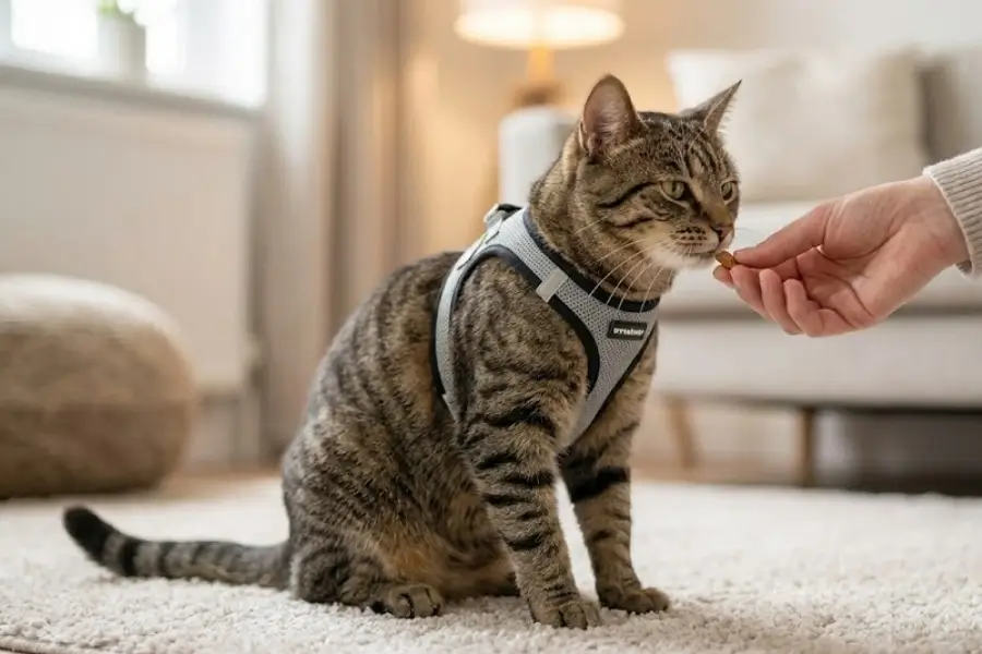 – Positive Reinforcement is Key: When you first put the harness on, it’s very likely your cat will do one of two things: freeze and fall over as if paralyzed, or try to wriggle out of it. This is normal! Your goal is to distract them and make the experience positive. Immediately offer them their favorite high-value treat or engage them in play with a favorite toy.